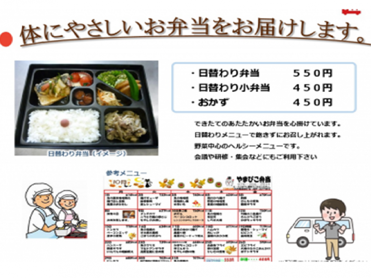 弁当、オードブルなど承っています。詳細はチラシにて確認ください。